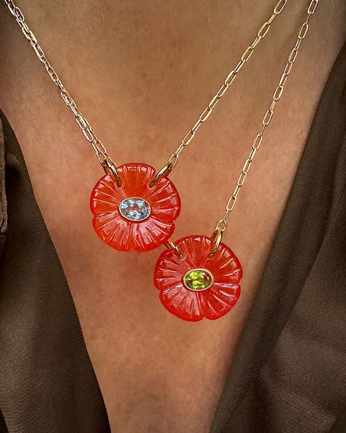 Cette collection est réalisée avec des cristaux bruts, polis ou taillés, qui grâce à une chaîne nous relient comme un élément à nos mémoires anciennes.